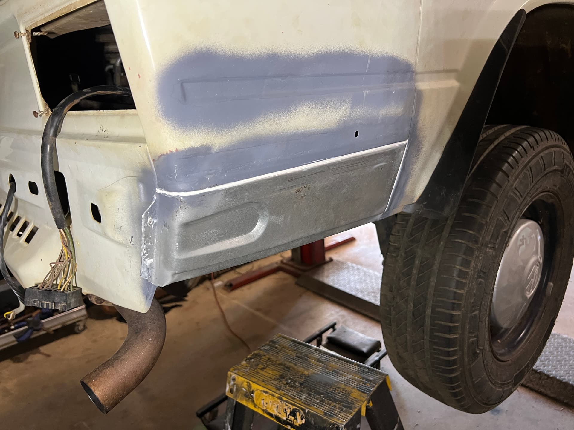 The repair in my photo was the second go as I had a tyre explode on me which ripped the replaced lower rear corner almost off and dented all around it including the battery tray.