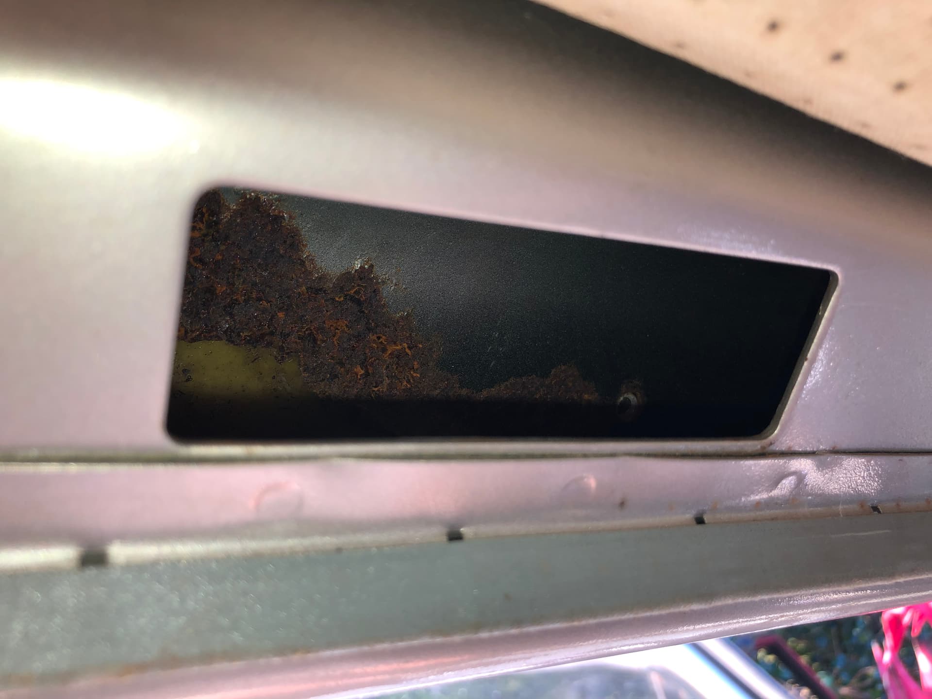 Hi all. Interesting issue with my pop top. Previous owner had used rivets on the passenger side above the gutter for some reason. There are none on the drivers side. I was having leak issues and could never find it. So bit the bullet and took off the front curtain rail and removed enough of the lining to look through the hole for the interior light. A credit card size section of the side under the fibreglass had rusted away. So water coming along the rain gutter went inside the and ran down until it found a way out. If parked slightly uphill it came out at the end of the rear curtain rail above my head!!!