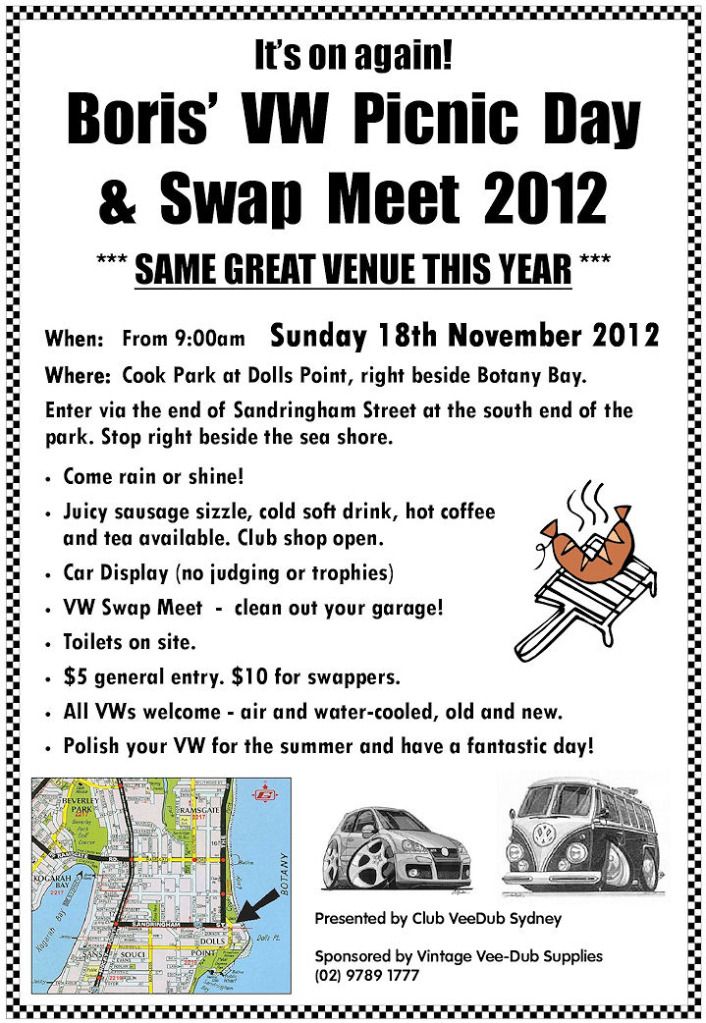 > November 18 is the Club VW Sydney picnic day and swap meet.